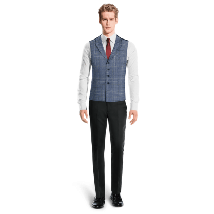 Blue Checkered Tweed peak lapel Suit Vest with brass buttons