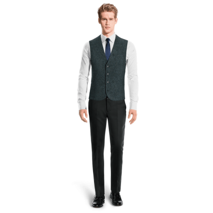 Green Tweed lapeled double-breasted Dress Vest with brass buttons