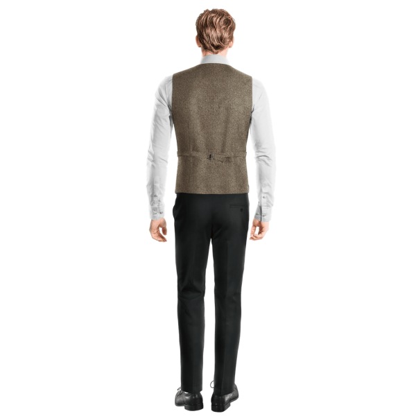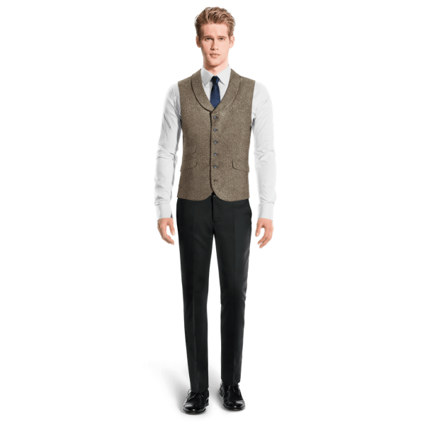 Light Brown rustic Tweed shawl lapel Vest with brass buttons