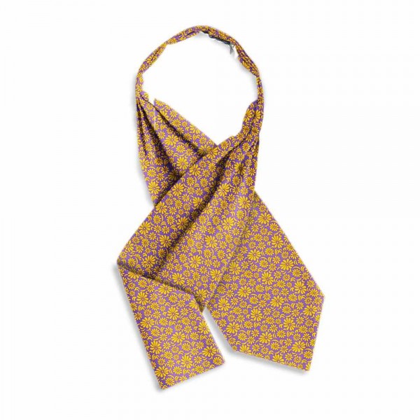 The Beltane Field patterned free-fold cravat features three stiched center pleats that allow luxurious drape in front without fabric bulk at the nape of your neck. It is completely reversible and sized for a perfect fit. May require a stick-pin.